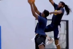 王牌对决!坎宁安贴防哈登到篮下直接大帽封盖后者上篮